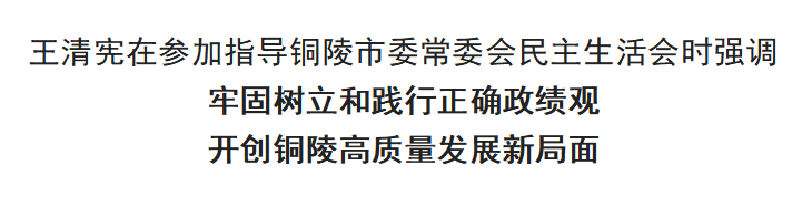 王清宪强调,要深刻领悟“两个确立”的决定性意义、坚决做到“两个维护”,自觉对标对表,经常校准偏差,始终站稳人民立场,持之以恒强化党性修养。要立足铜陵产业基础和比较优势,扎实抓好产业培育和“双招双引”,做强做优做大铜产业集群,因地制宜培育新兴产业和未来产业。要坚定走内涵式发展路子,主动融入沿江城市群高质量联动发展,提升城市功能品质活力。要坚持共抓大保护、不搞大开发,加强入河排污口监管,保护好长江岸线资源。要以深化改革开放激发高质量发展动力活力,持续创优营商环境,推进对照学习沪苏浙,提高市场化、法治化、国际化、专业化治理能力。要推进县域特色产业集群建设,培育壮大乡村特色产业,加力推动城乡融合发展。要把民生工作摆在更加突出位置,扩大优质公共服务供给,加强对低收入家庭、贫困家庭的关爱帮扶,用心解决好群众急难愁盼。要扛牢管党治党政治责任,以更高标准、更实举措推进全面从严治党,尤其要贯彻全省开发区党的建设工作会议要求,完善开发区等重点领域权力运行制约监督机制,提高制度执行力、反腐败穿透力。