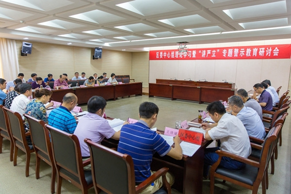 8月4日上午,郊区区委中心组召开“讲忠诚、严纪律、立政德”专题学习研讨会,主要任务是深入学习贯彻习近平新时代中国特色社会主义思想和党的十九大精神,特别是总书记关于“立政德”的重要论述,重点围绕“不忘初心忘没忘,牢记使命牢不牢”,以鲁炜等案件为反面教材,联系省、市、区有关领导干部违法违纪案件,交流认识体会,进行集中研讨,教育引导全区广大党员干部进一步树牢“四个意识”,坚持“两个维护”,营造风清气正的政治生态环境。区委书记纪红兵主持会议并讲话。区领导张琼、陆东、左国强、李文庆、黄庆、朱世木、王晓阳、刘晓兵、王诗斌、姜烨、陈小明作学习交流发言。